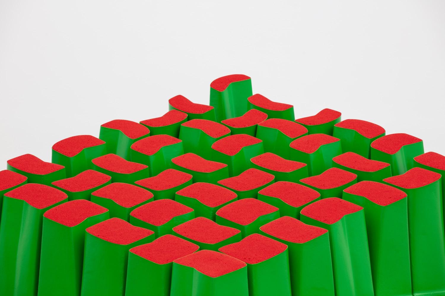Il punto di partenza di MSCHF per la loro nuova opera d’arte è l’iconico PRATONE® di Giorgio Ceretti, Pietro Derossi, Riccardo Rosso. Oltre cinquant’anni dopo la creazione di questo capolavoro in morbido poliuretano e Guflac®, in CUT PRATONE® MSCHF sollecita una riconsiderazione del suo design tagliando i suoi “fili d’erba”, spargendone i ritagli e rivelando le interiora di schiuma rosso sangue del PRATONE®.
