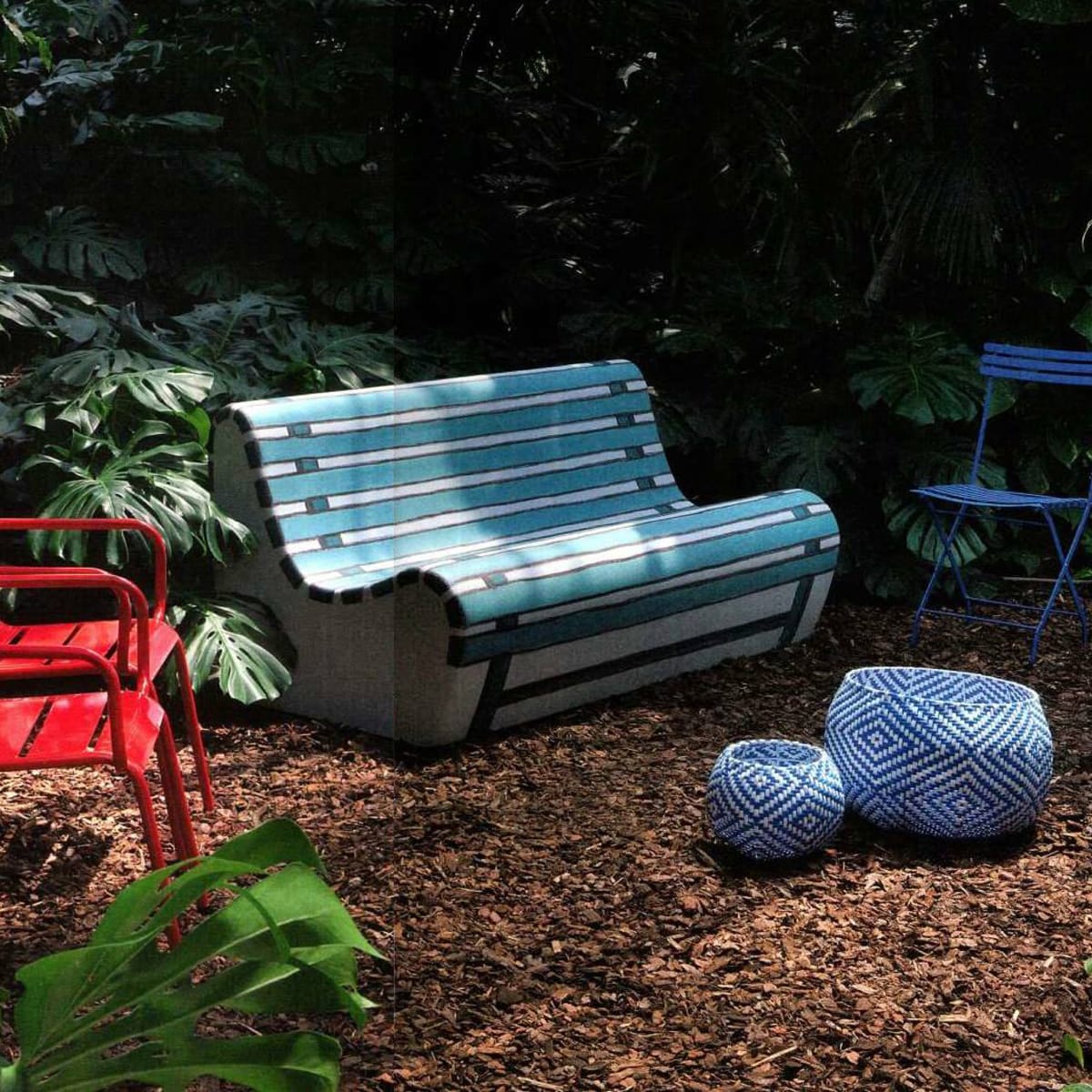 La magia del design di Berruti sta nella reinterpretazione, capace di trasformare l’immagine originale di una panchina italiana del dopoguerra in un divano spazioso e confortevole, rifinito con il caratteristico rivestimento Guflac® Plus di SomeName. La versatilità della panchina permette a questi divani di inserirsi perfettamente in un salotto di famiglia o in un giardino tra fiori e alberi, sfumando il confine tra arte e design.